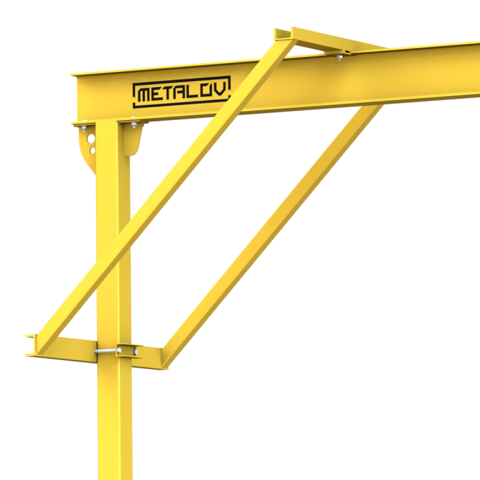 В конструкции крана использованы усиливающие элементы – раскосы. Данное техническое решение увеличивает общую жесткость и позволяет существенно снизить поперечную раскачку при перемещении груза. Усиленный раскосами мини-кран отлично адаптирован для применения с талями, оснащенными электроприводом которые создают достаточно сильные колебания.