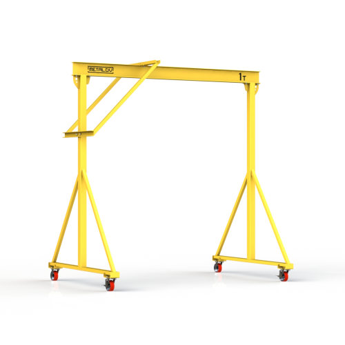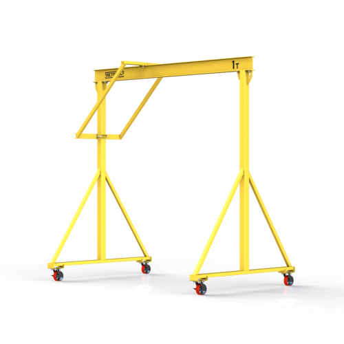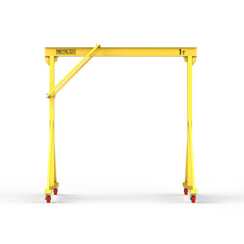 Мини-кран козловой мобильный ручной (МПУ) усиленной конструкции с раскосами Мобиус-R1 с грузоподъемностью до 1 тонны, с высотой до балки 4 метра и шириной пролета 3 метра, это компактное устройство, для подъема и перемещения грузов на небольшие расстояния. Кран адаптирован для работы в помещениях, и может быть использован на улице.