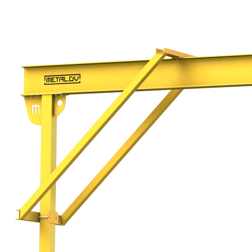 В конструкции крана использованы усиливающие элементы – раскосы. Данное техническое решение увеличивает общую жесткость и позволяет существенно снизить поперечную раскачку при перемещении груза. Усиленный раскосами мини-кран отлично адаптирован для применения с талями, оснащенными электроприводом которые создают достаточно сильные колебания.