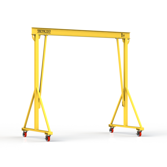 Мини-кран козловой мобильный (МПУ) усиленной конструкции Мобиус-V с грузоподъемностью до 1 тонны, с высотой до балки 2 метра и шириной пролета 3 метра, это компактное устройство, для подъема и перемещения грузов на небольшие расстояния. Кран адаптирован для работы в помещениях, и может быть использован на улице.