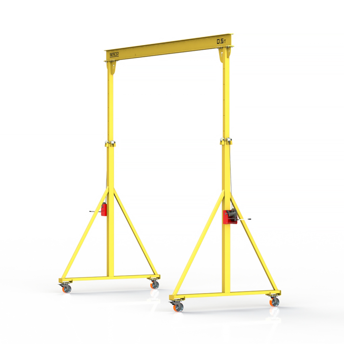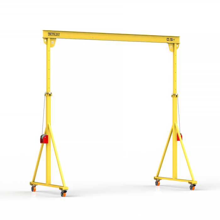 Мини козловой кран мобильный ручной (МПУ) с регулируемой высотой до балки Мобиус-TU имеет грузоподъемность до 500 кг, минимальная высота составляет 3 метра, максимальная 4 метра. Ширина пролета 5 метров. Кран оборудован телескопическими опорами, высота которых регулируется с шагом в 250 мм, телескопические опоры выдвигаются при помощи ручной лебедки.