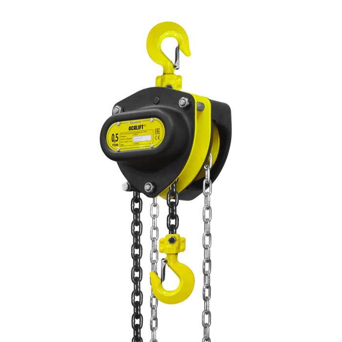 Таль OCALIFT SEVERE (СЕВЕР) оборудована двумя вращающимися крюками, выполненными из высокопрочной стали. Оба крюка имеют специальные защелки, которые исключают соскакивание тали или груза. Верхний крюк закрепляется к анкерной точке, нижний крюк закрепляется к грузу.